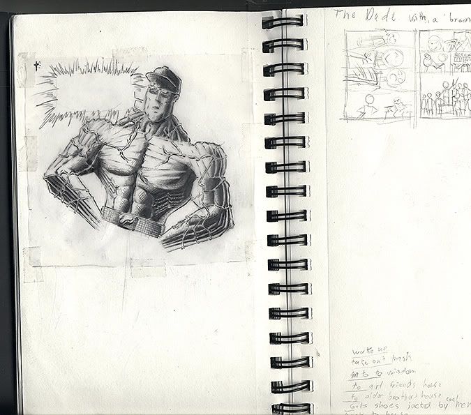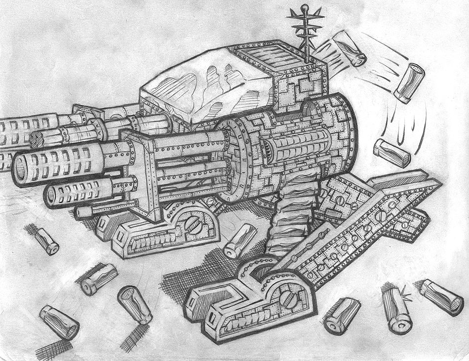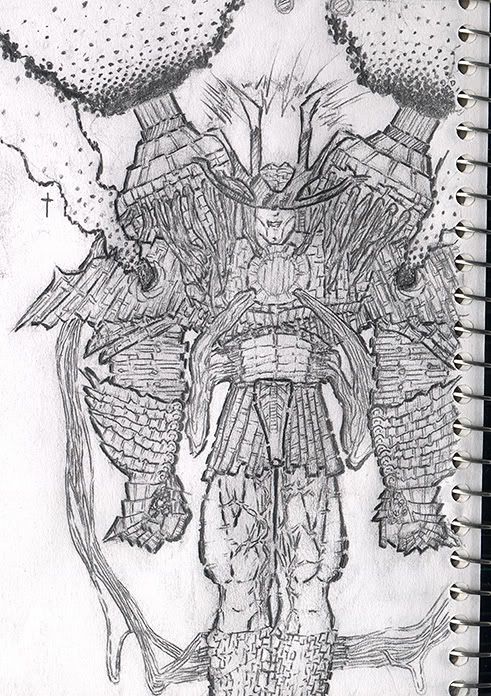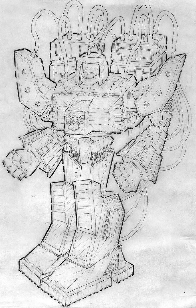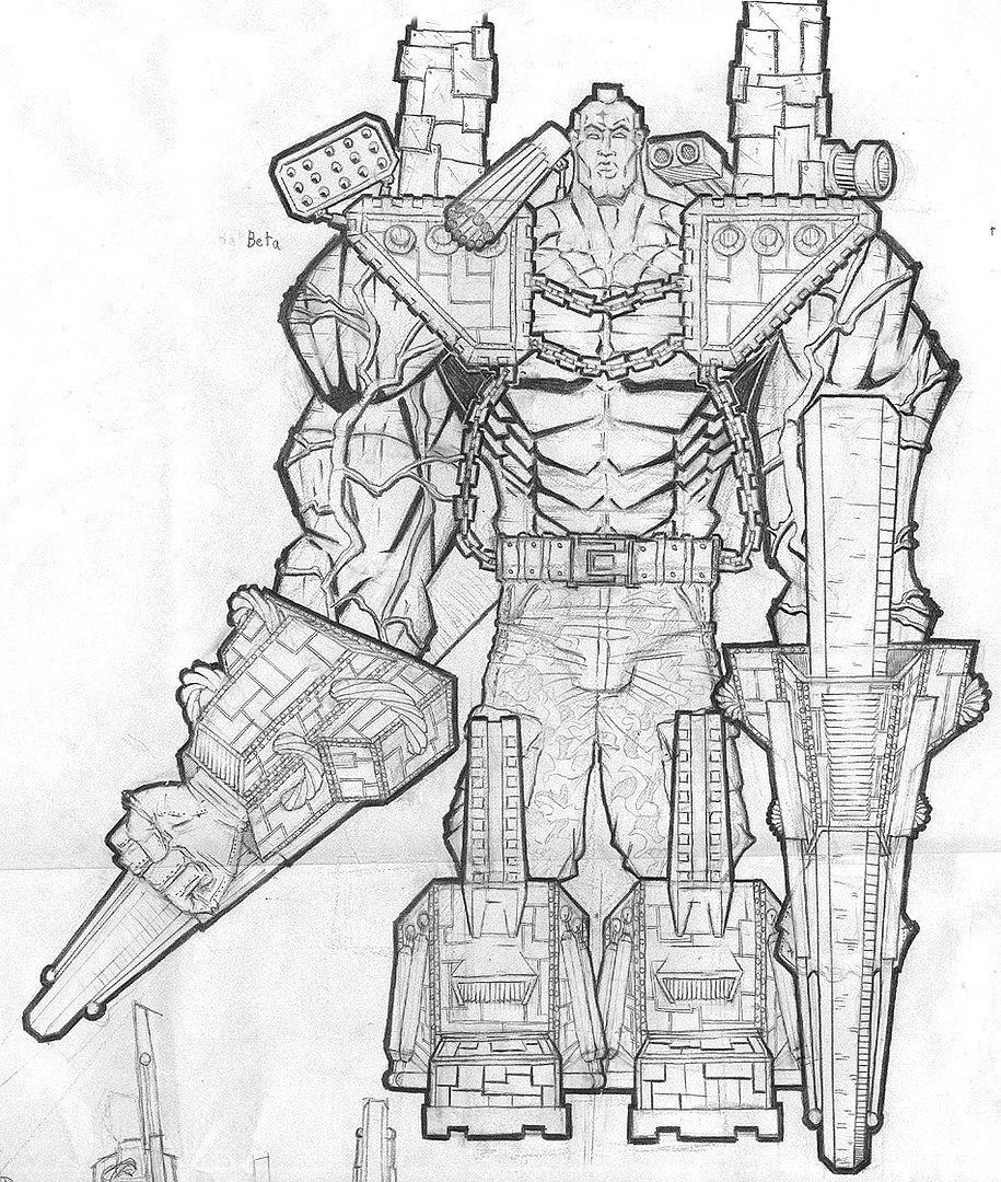 Did this in 2005. It’s a redesign of a character I did in 2002. As you see, it’s a 20-foot giant, made from the military, half human half mechanical. He has large jackhammers on his arms and a nuclear power plant on his shoulders.