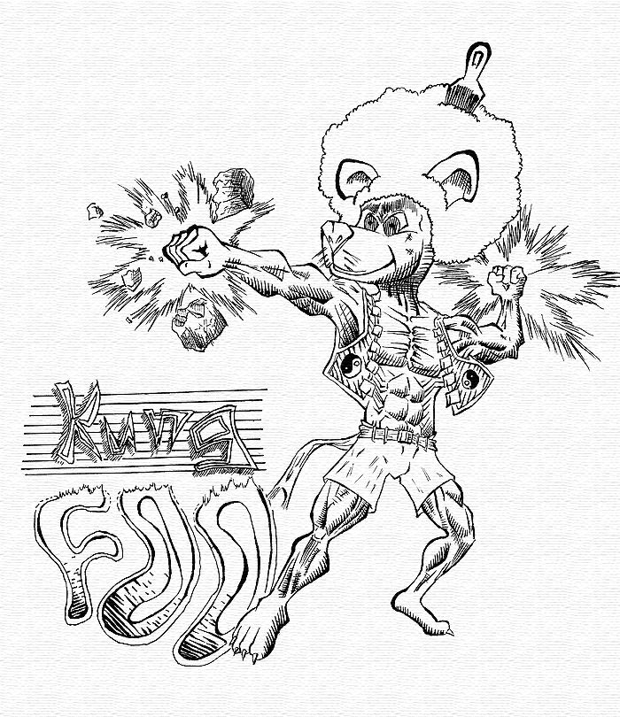 Did this for a T-shirt design in 2003. It’s of a kung-fu dog mixed with a little Funk, added an Afro a jacket and a belt. At this time I was moving more form cartoon style art to comic book style art. My brother wished for me to keep it as a simple cartoon for the customers but I went over board with added realistic anatomy and details. I penciled, inked, and colored it.