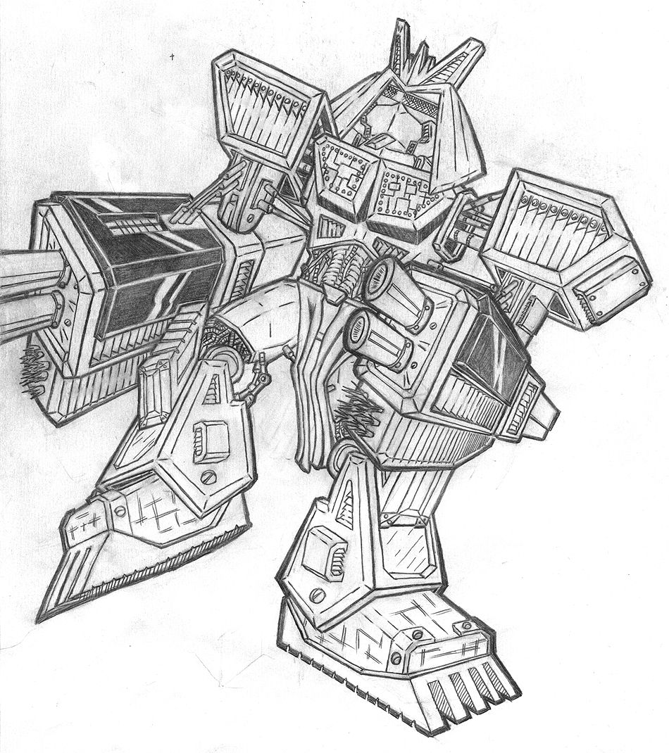 This lesson teaches about the human figure Mech, hopefully I’ll have time to make one that’s more animal like with huge weapons. I’ll show some of the designs I’ll use for the large Mech I’ll be doing on large art paper.