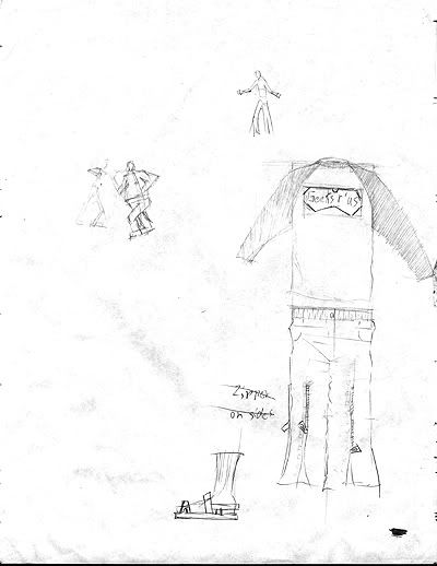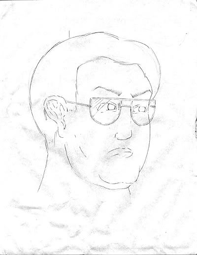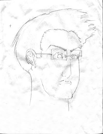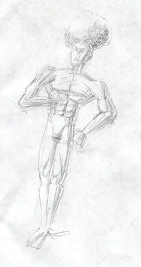 As you see here, there is a much larger figure in this drawing. Just make the shoulders 4 head lengths, the arms, lags, hip, feet, and hands need to be readjusted to match more, leave the head small. The doted line shows were the last figure was. This step should only take a few minutes.